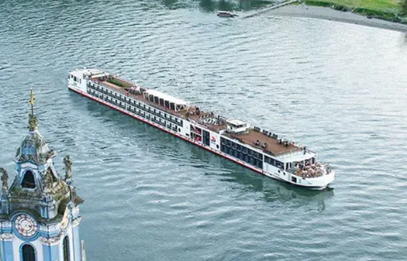 River-view stateroom with floor-to-ceiling sliding glass door to create a French balcony